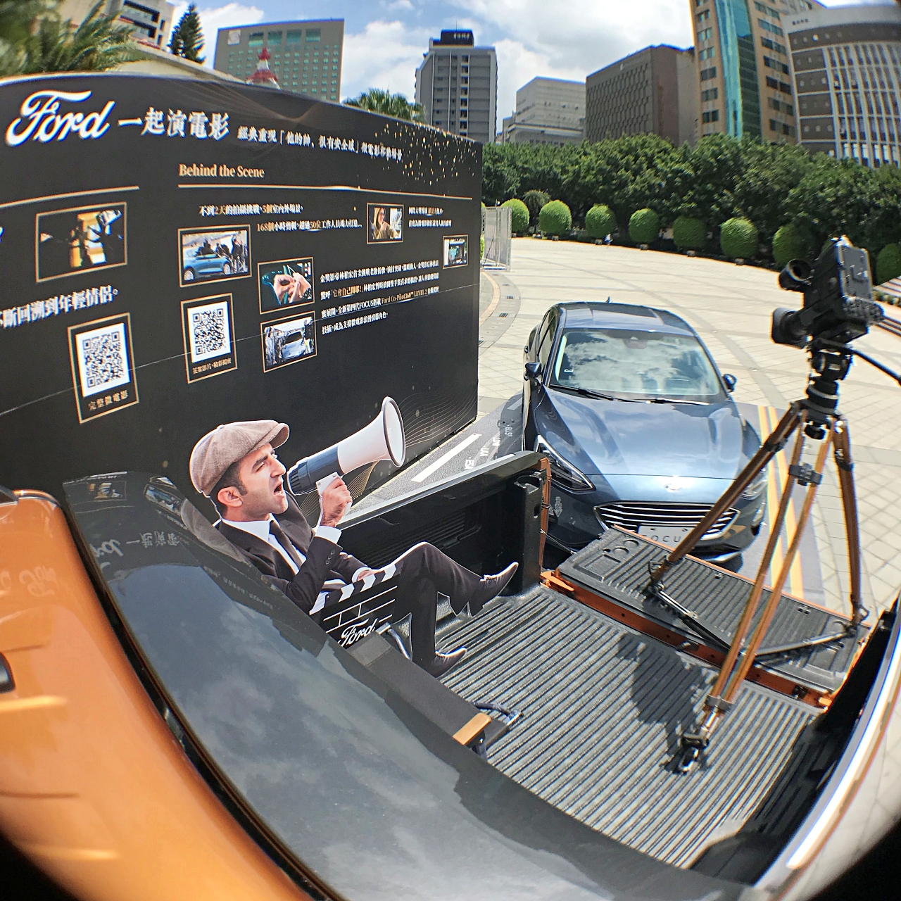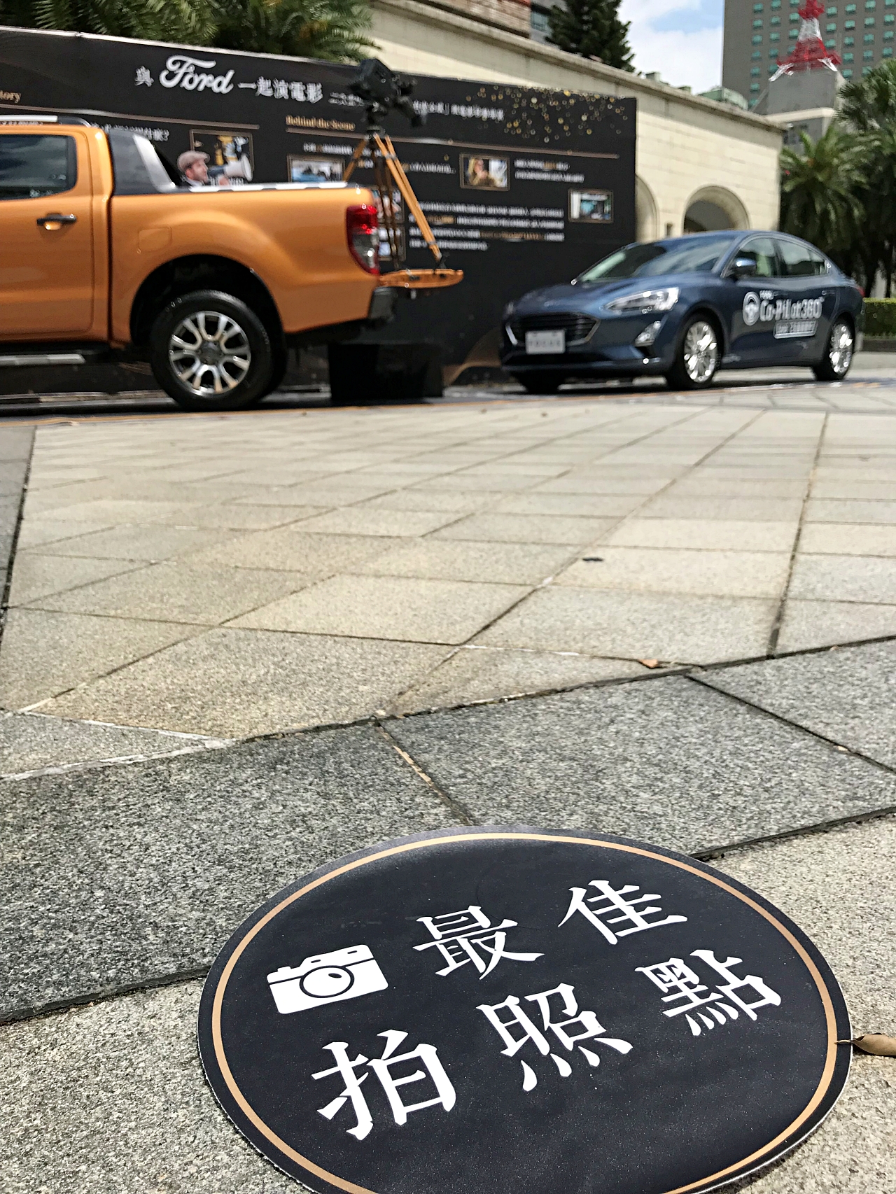 1. 在臺北市中山堂廣場和「與Ford一起演電影」戶外移動式場景中的Ford Ranger和Ford Focus一同拍攝演很大的劇照或短影片。