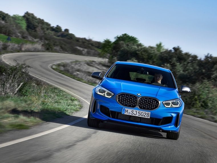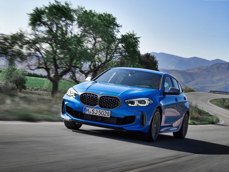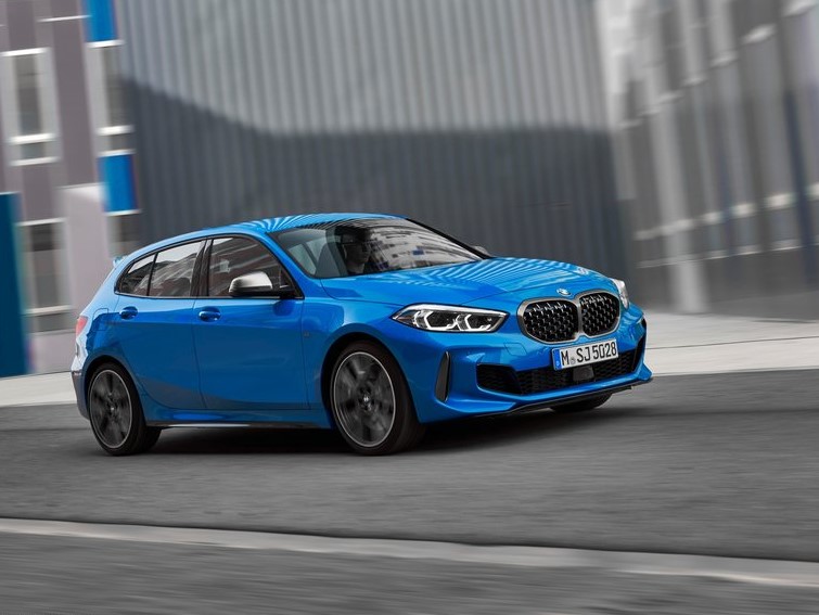 全新世代BMW 1系列的外觀設計,透過更犀利的筆觸勾勒出與眾不同的設計語彙,BMW精神象徵的雙腎形水箱護罩,首次採一體式設計,搭配源自賽車概念的3D立體網狀造型 (M135i xDrive車型),為車頭挹注濃郁的競技氛圍,分置於車頭左右側新世代類六角形LED頭燈運用前後延伸的設計,不僅讓車頭造型輪廓更加流線,同時增添時尚動感的氣息。