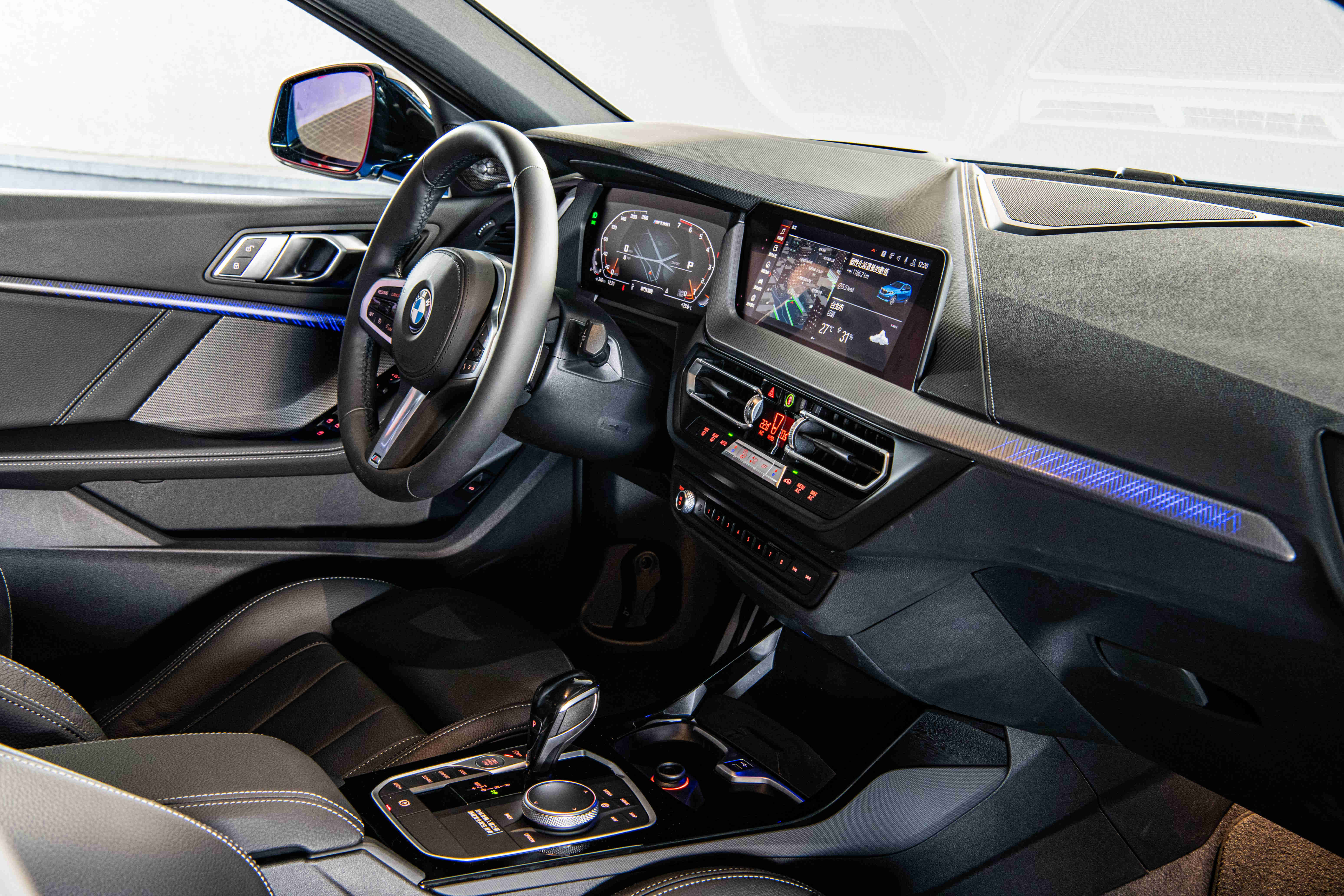 全新世代BMW 1系列對於車艙內裝鋪陳與細部質感營造,充斥著滿滿的科技感與熱血駕馭氛圍,以駕駛者為中心導向的中控檯設計,讓崇拜BMW品牌精神的車迷愛不釋手,採用Dakota真皮(或Alcantara麂皮/高級織布)的內裝搭配,賦予車內個性活力的動感氣息。