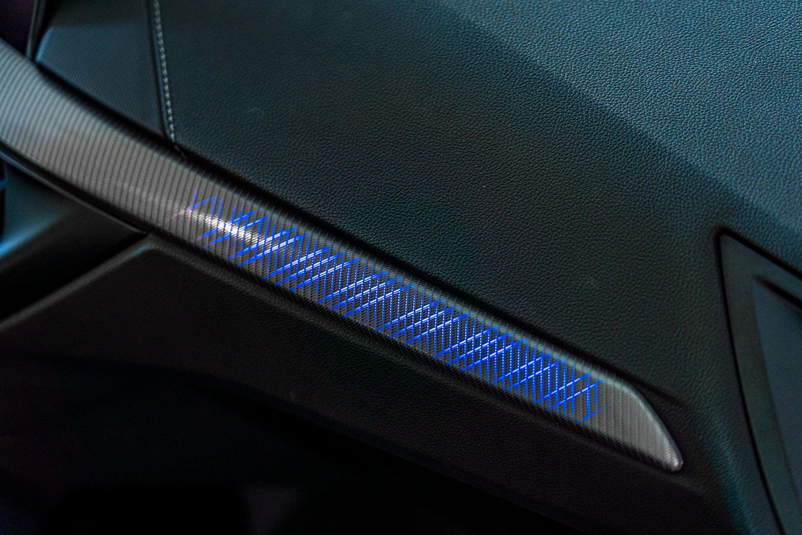 除了令人印象深刻的新世代外觀,全新世代BMW 1系列的內裝格局同樣跳脫框架,以突破慣性的設計思維打造熱血個性化座艙,首先是中控儀錶檯採用對比色縫線裝飾點綴,創造出強烈的立體感和跑車格調,而座艙內部全新設計的光影飾板(可和環艙氣氛燈一起改變顏色,共有6種顏色選擇),可讓駕駛者依照個人喜好和心情做調整,炫目之餘更添個性風彩。