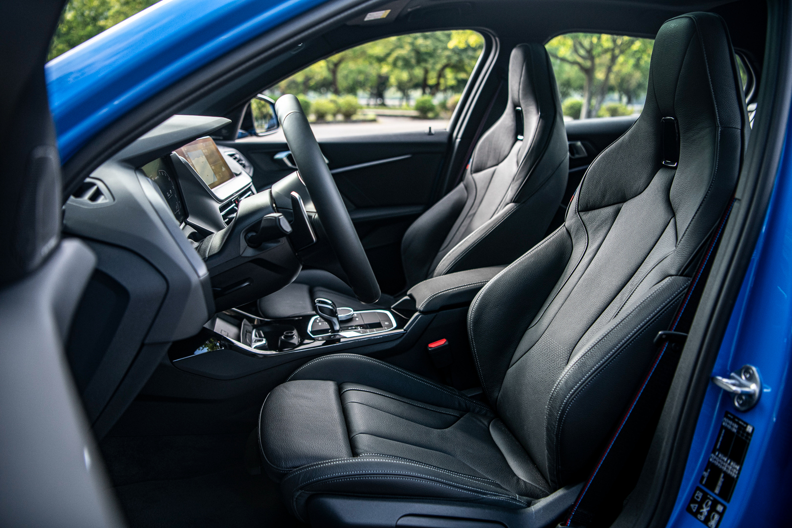 頂級車型M135i xDrive配備高質感的Dakota真皮內裝(亦可選Alcantara麂皮/高級織布內裝),打造出獨一無二的運動奢華風,環視M135i xDrive的駕駛艙,包覆支撐性極佳的桶形M款雙前座跑車座椅,以及M款多功能真皮方向盤等跑車化配件襯托下,讓駕駛者的情緒有如置身賽道起跑線前,等待燈滅立即踩下油門般熱血沸騰。