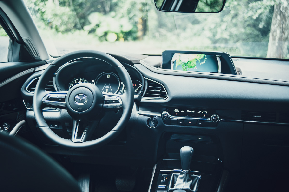 操作界面仍維持高度人性與簡約設計,強化人與車的互動。CX-30採用HMI人因工程技術還有MAZDA CONNECT人機智慧資訊整合系統,簡單來說,你可以透過尾居中控台上方的8.8吋中央資訊顯示幕得知一切訊息,搭載新型態分割式畫面、增大多功能控制旋鈕、智慧型手機連結功能,還內建一套升級版原廠衛星導航系統。