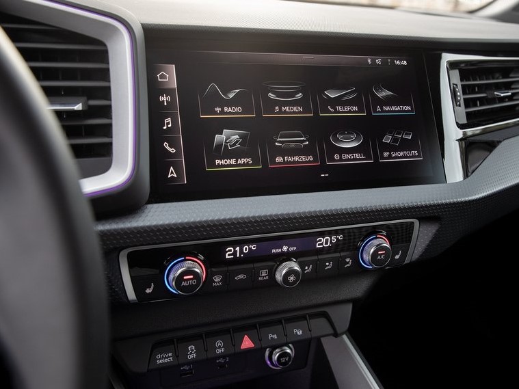 全新世代Audi A1 Sportback全車系標配智慧便捷的10.25吋高畫質全數位儀表板,中控介面則採用與家族旗艦Audi A8同概念之MMI多媒體資訊整合系統,並搭配Audi 智慧型手機介面,提供更直覺的操作方式,多項功能皆可透過觸控和下方的快捷鍵控制調整,一指輕鬆搞定。