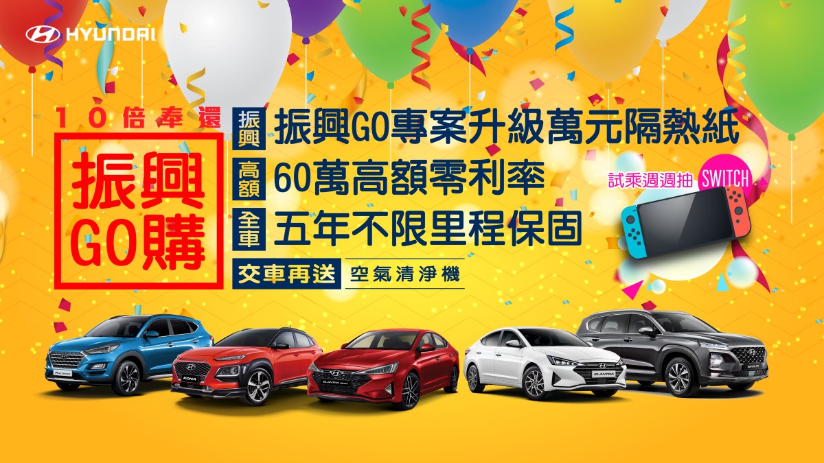 後疫情時代經濟復甦蠢蠢欲動,為了響應振興券發放全民拚經濟,Hyundai推出購買新車或回廠保修超倍數回饋。