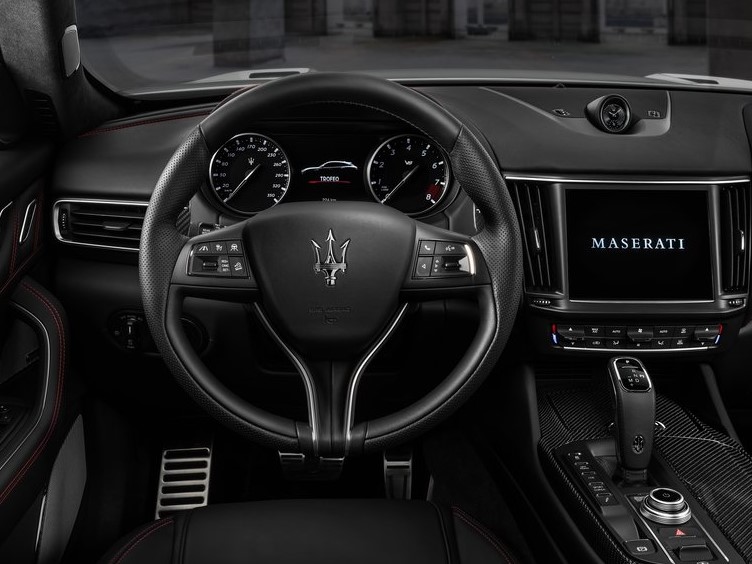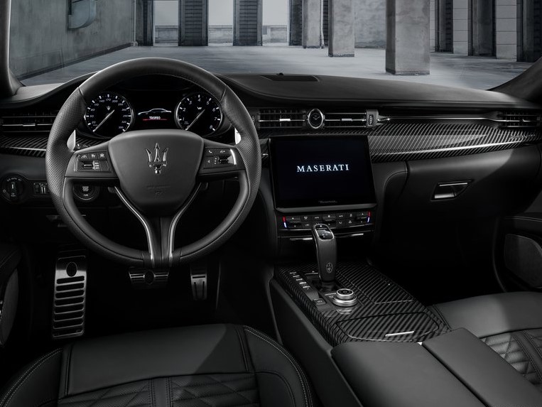 登入車室,極具質感且奢華的精緻內裝也襯托出Trofeo車系的不凡,同時保有Maserati對義式美學的堅持。「Trofeo」徽飾可見於每個精心規劃的細節中,例如引擎啟動時,儀表板將顯示Trofeo專屬迎賓畫面、前後頭枕也擁有專屬的立體刺繡。