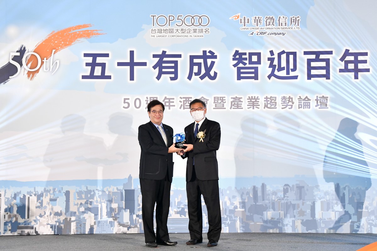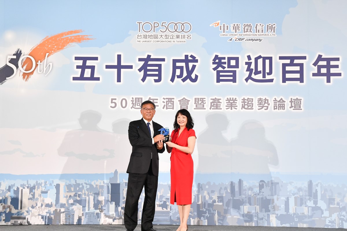 CRIF中華徵信所自1971年以來,每年針對年營收一億元新台幣以上的公民營企業進行排名調查及營收淨額的排名,今舉辦「五十有成 智迎百年」Top5000五十週年慶祝酒會,邀請產官學界來賓齊聚一堂,共同見證台灣產業半世紀以來的成長起飛與豐碩成果,並且特別頒發獎項給多年來營收排名位居前百大之傑出企業,表彰對於台灣經濟發展之卓越貢獻。
