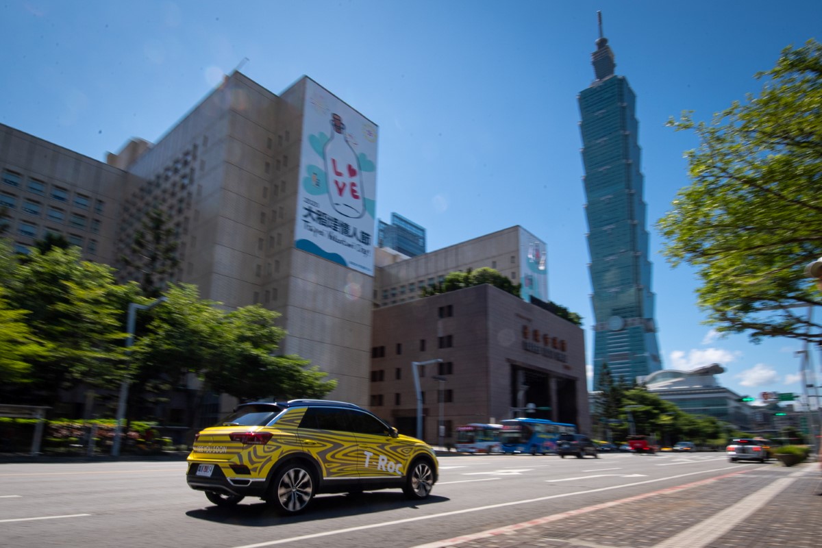 台灣福斯汽車預計在第四季引進的全新休旅 The T-Roc,今日搶先於台北市區路上進行測試。