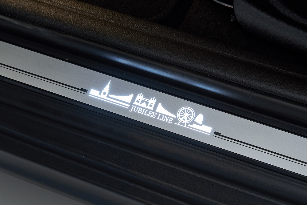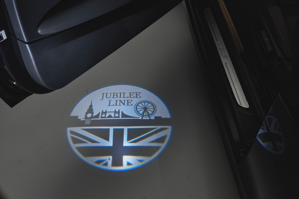 開啟車門,MINI Jubilee Line Edition限量版獨有的MINI Jubilee Line LED門板照地燈,即將倫敦意象映射在地面上,溫暖迎接車主入座。昔日榮耀與當代建築並存的倫敦天際線,於帶有髮絲紋設計的銀色霧面MINI Jubilee Line LED迎賓門檻上隱隱透光。以最新科技3D列印技術打造的Melting Silver高質感銀色MINI Jubilee Line方向燈飾板,結合Jubilee Line字樣與英國旗幟,展現獨有的紀念意義,成為MINI Jubilee Line Edition最醒目的身分象徵。