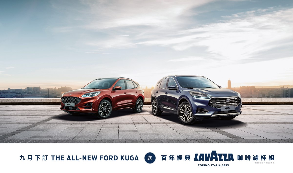 凡於9月1日至9月30日下訂The All-New Ford Kuga任一車型,將致贈百年經典咖啡品牌Lavazza咖啡濾杯組乙組,數量有限、送完為止。