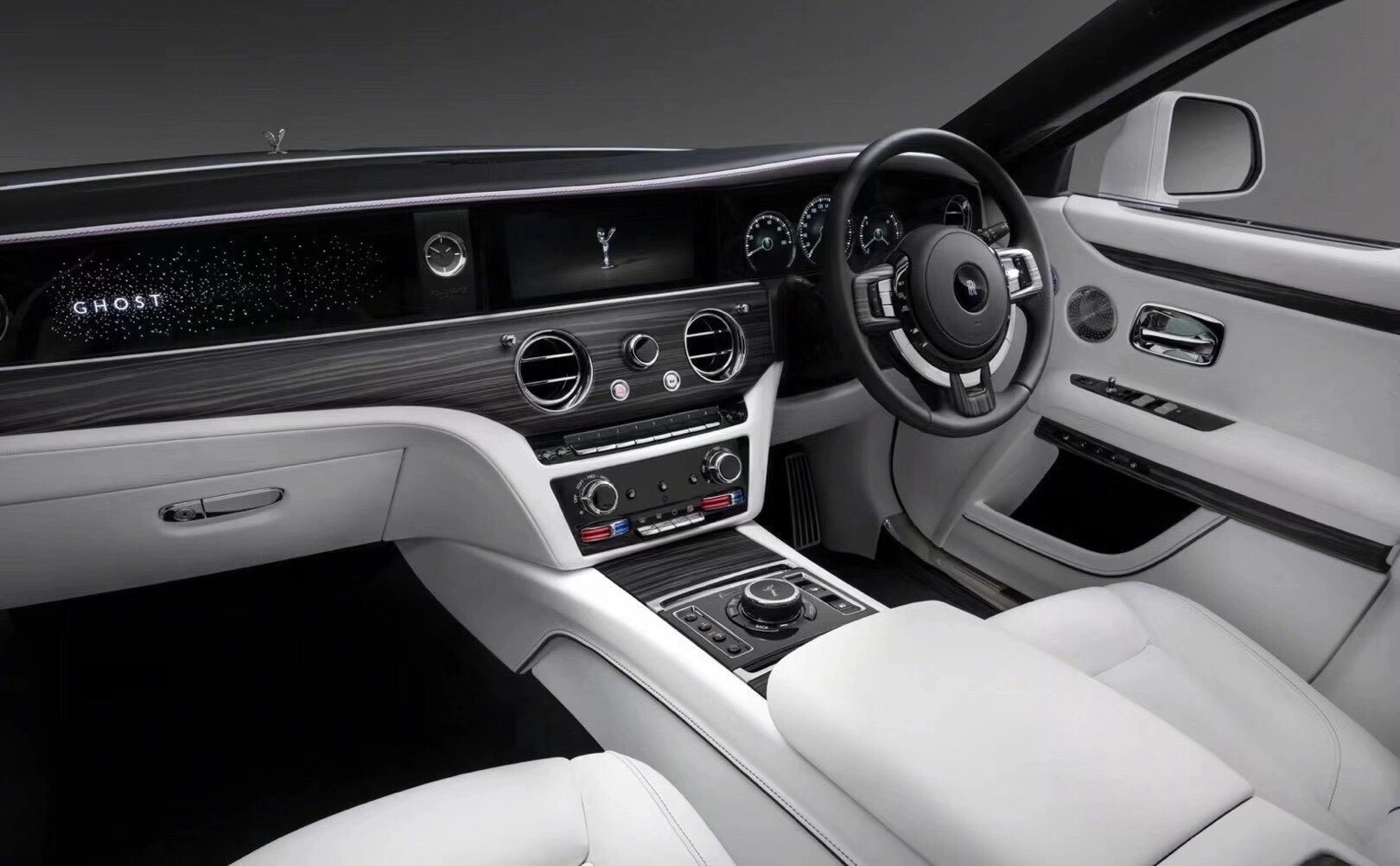 勞斯萊斯Bespoke高級定制部門設計師、工程師、和工匠們為全新Ghost締造了專屬的星光儀表飾板:這一世界首創的Bespoke高級定制設計與勞斯萊斯的星光頂篷巧妙呼應。勞斯萊斯的星光頂篷設計早已與“歡慶女神”、“希臘神廟進氣格柵”、“雙R”標誌共同成為勞斯萊斯汽車標誌性設計。