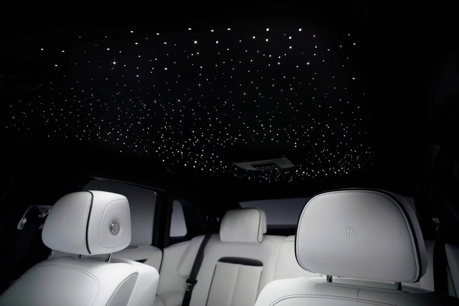 星光儀表飾板設計歷時兩年,耗時超過10,000小時。這件優雅耀目的星光儀表飾板四周由850多顆星星環繞。當車內燈光未開啟時,位於副駕駛前方的星光儀表飾板則處於完全隱蔽的狀態。勞斯萊斯Bespoke高級定制部門並未採用簡單常規的螢幕技術,而是研發出純粹奢華的創新技術以實現這款獨特的星光儀表飾板設計。星光儀表飾板的發光效果源自152支LED燈源,每個LED燈的顏色都與車內時鐘及儀錶盤完美契合。為使“Ghost”字標發光效果均衡且柔和至極,全新Ghost採用了厚度為2毫米的光導,其表面有90,000餘個鐳射蝕刻點。該光導不僅可以將散發的光線均勻分佈,還能產生閃爍效果,星光儀表飾板的光點與星光頂篷的閃爍星光互相呼應,共同在車內打造出夢幻氛圍。