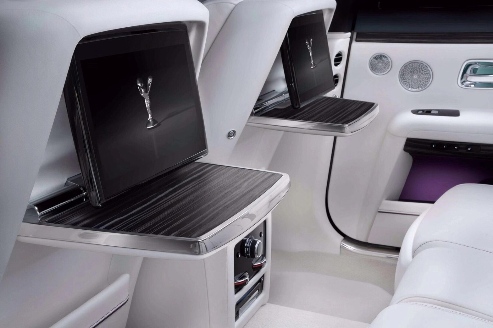 全新Ghost車內搭載兩個自我調整功能麥克風,用於即時監測音訊的過度銳化與降噪,並在可能不盡如意的聲音觸抵擴音器之前,及時調整其響度以抵消噪響。Bespoke高級定制音響系統將音樂的極致音質完整保留,提供尊享專屬的暢聽體驗。