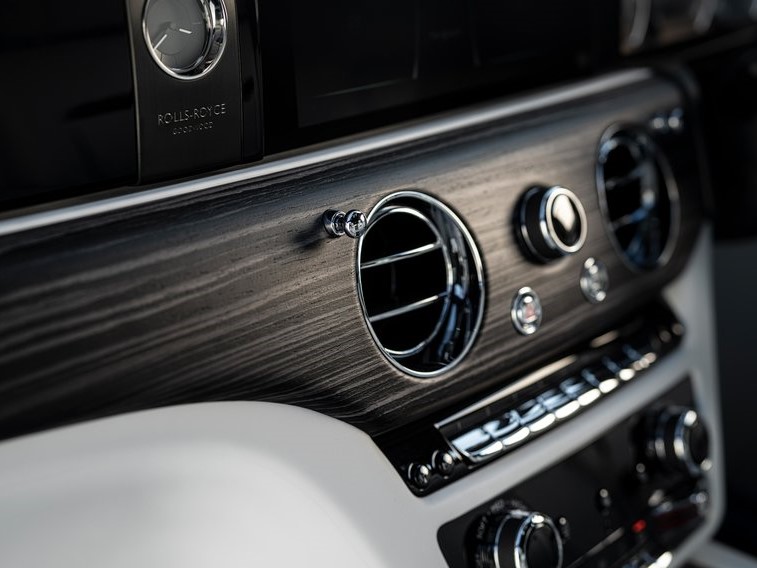 全新Ghost木質內飾裝飾採用開孔飾面,敢於展示木材原貌。勞斯萊斯為全新Ghost專門設計了兩種新型飾面。第一種是開孔型鑲板木料 - 黑曜石(Obsidian Ayous),靈感源自絢麗多彩的熔岩色。第二種是黑琥珀(Dark Amber)該飾面是在深色木材上加入細微鋁顆粒紋理,為內飾增添迷人魅力。與皮革飾面一樣,全新Ghost的儀錶面板木材也是片成單板長薄片,其中有冷光金屬的通風孔。微環境淨化系統(MEPS)過濾後的空氣正是通過這些通風孔進入車內。