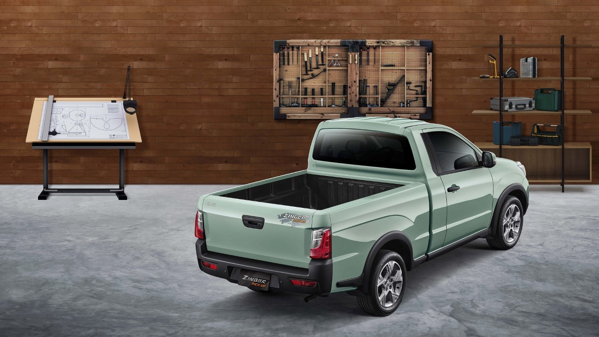 全新Zinger pick up迎合皮卡風潮,採用一體式鈑金貨台設計,輔以粗曠大器的後保桿,並以流線動感的車側設計打造率性獨有之皮卡風格,搭配耀眼的日行燈、以及全新輪弧造型設計與17吋戰斧鋁合金輪圈,專業質感更加值。專屬「青松綠」新車色,增添商場活力色彩,讓商車表現更多彩多姿,打破傳統商用車形象。