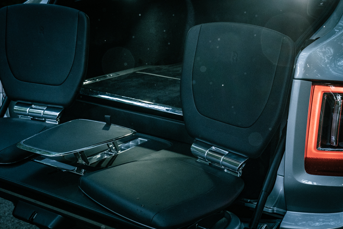 Cullinan與其它Rolls-Royce最大差別在於後廂機能,按下行李廂或後車門貯物間隔按鈕,電動座椅就是變形金鋼,呈現出靈活佈局。