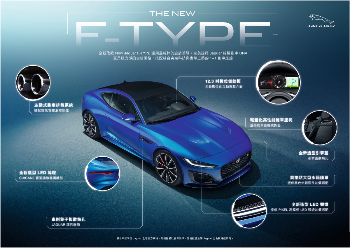 承襲英倫賽道工藝優良血脈 賦予車主馭無反顧的嶄新駕乘體驗 ,Jaguar New F-TYPE正式在台發表,建議售價366萬元起,入主即享0負擔5年原廠保養專案。