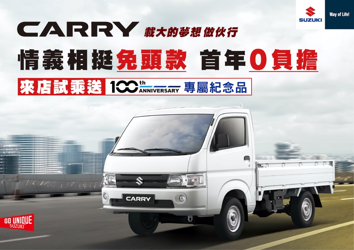 全新世代Carry以超越同級的超大載重、節能油耗及靈活操控等堅強實力,獲得全台年輕創業頭家們的肯定。TAIWAN SUZUKI推出史無前例的超激優惠,入主Carry不僅購車免頭款,更享等值首年月付額的萬元大紅包,獲得頭家們的熱烈迴響,本月優惠不間斷,力挺全民拼經濟,讓更多頭家輕鬆做生意。