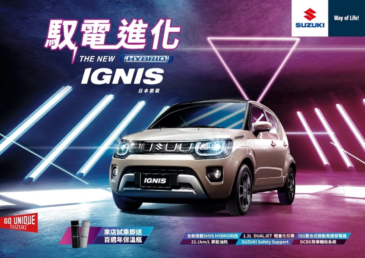 Suzuki新世代戰略小車Ignis,結合掀背車功能與SUV車型的高頂設計,搭配靈活多變的座艙配置,以Suzuki首部SHVS(Smart Hybrid Vehicle by SUZUKI)智能混合動力車之姿,再次撼動台灣車壇!