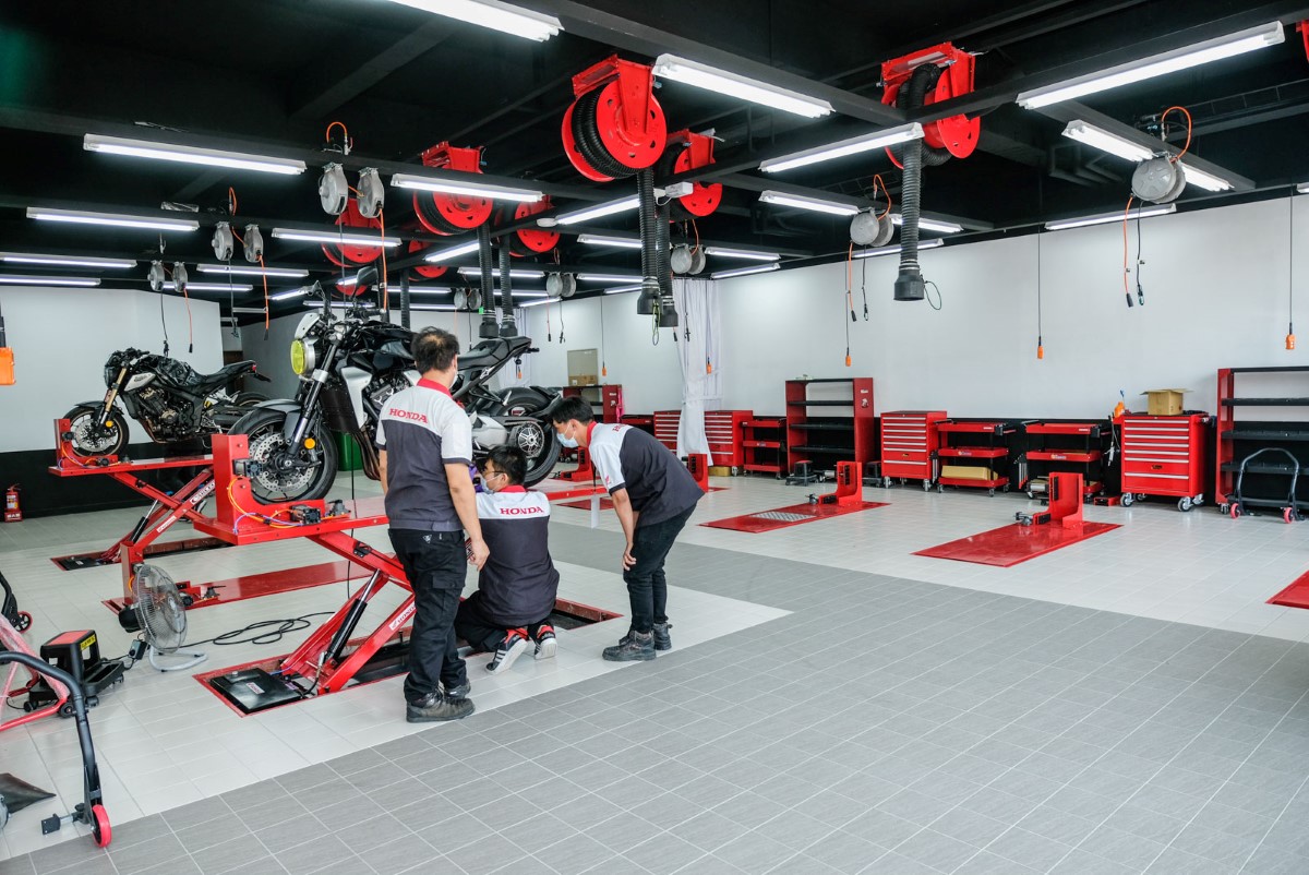 維修區域則是採用白色為主色調,與休憩溫馨感十足的來賓商談室與會員休息區,搭配店裡充滿復古感的裝潢與1.2樓的空間環境,提供等待愛車維修的車主一個簡約且乾淨的舒適環境,Honda Motorcycle將帶著世界級水準的商品與服務,與二輪車主展開充滿喜悅的駕馭感受。