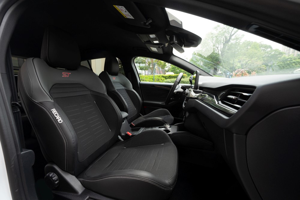 內裝部分,Ford New Focus ST Wagon – SLS Edition採用運動碳纖維紋路飾板搭配闇黑頂篷,營造絕對性能氛圍。ST專屬賽道級RECARO運動跑車座椅更是座艙內最具戰鬥氣息的靈魂所在,提供出色的支撐性與包覆感受,在激烈操駕下也能維持駕駛人的姿勢與舒適度。而ST專屬平底運動化方向盤則於右側多功能按鍵附「S」鍵與「Mode」選擇模式鈕,駕駛人可在駕駛狀態下以迅速直覺反應切換動態模式,動態操駕表現精準勝出。