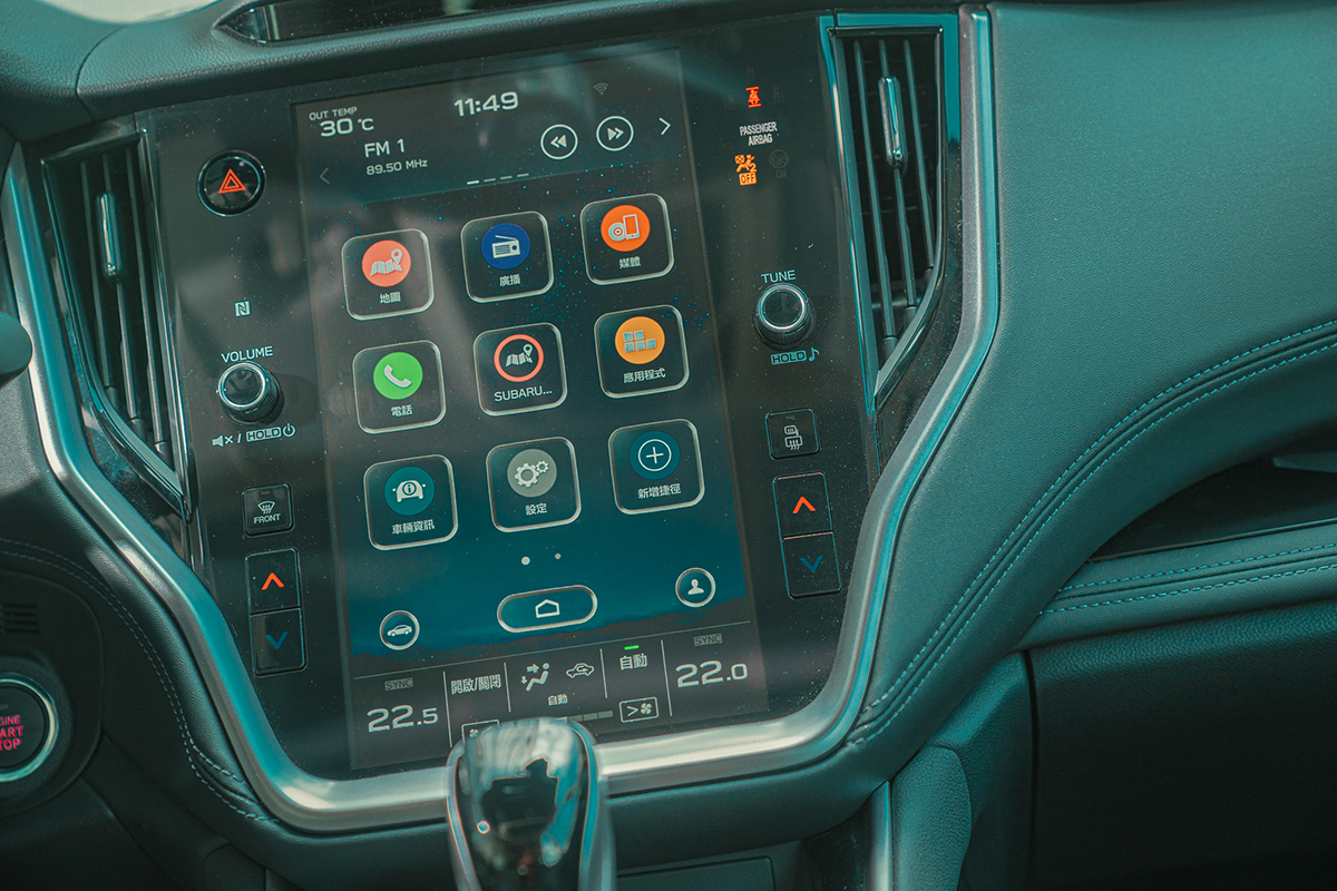 我們首先感受到的是在新Outback人為本的車艙佈局中,透氣又質感好的全新Nappa真皮座椅坐來實在舒服,於是我們也就有了坐在車裡慢慢看配備、慢慢感受內裝貼心度的藉口。