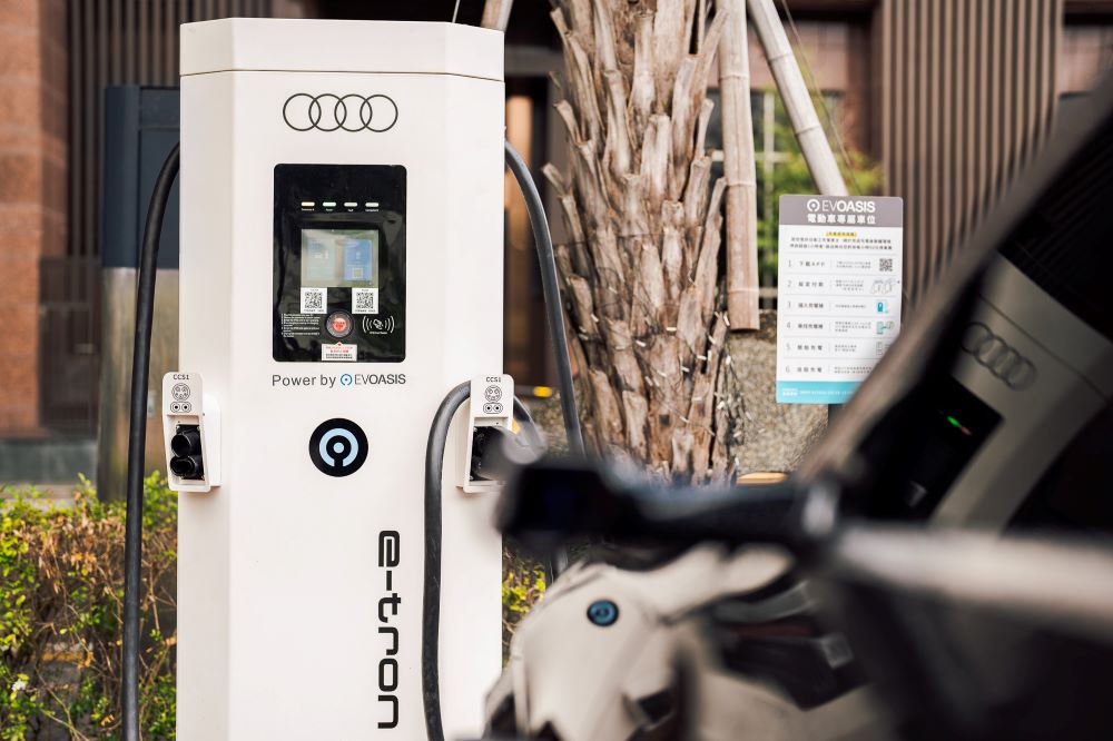 Audi與EVOASIS聯手於台東桂田喜來登酒店建置全新Audi極速充電站,於今日啟動試營運,即日起至9月11日,純電車主於此站點使用EVOASIS App啟用充電可享NT$5.8/kWh充電禮遇 (原價NT$10/kWh)。