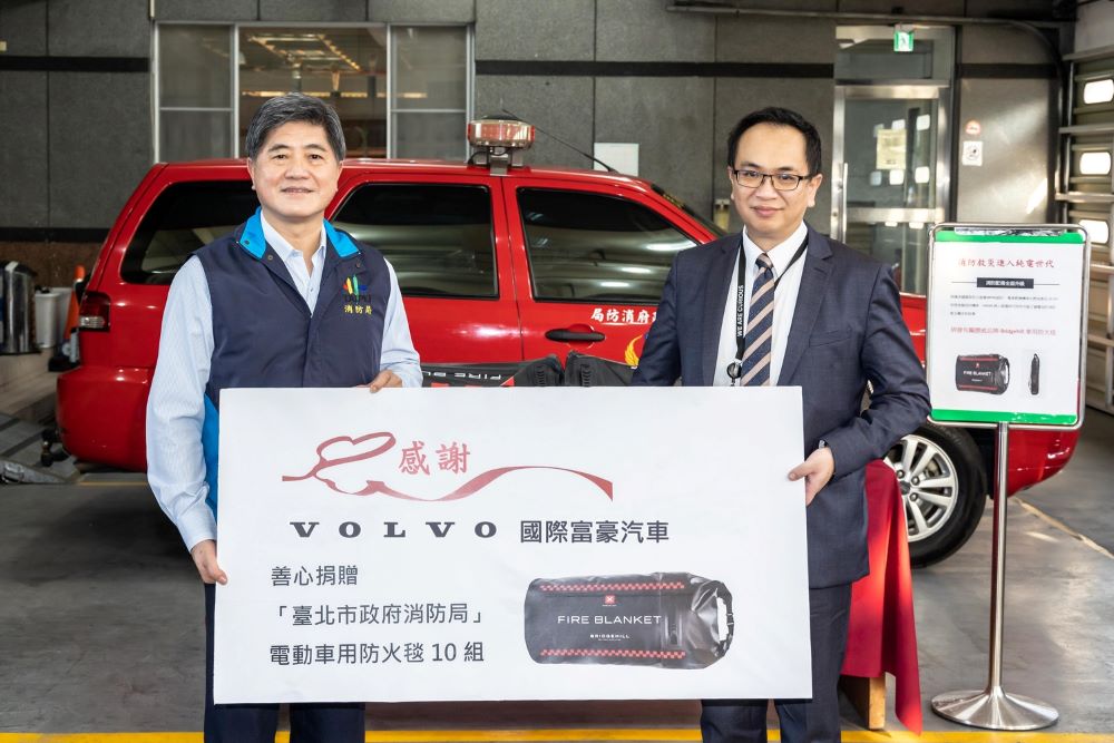 今日 Volvo國際富豪汽車總裁陳立哲代表 Volvo捐贈 10 件挪威 Bridgehill 專業車用防火毯予台北市消防局,為都會區行車安全與第一線打火兄弟盡一分心力。