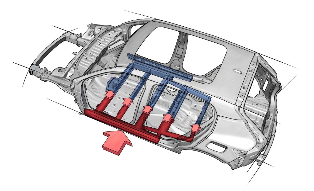 根據美國國家防火協會 (NFPA) 統計電動車燃燒機率相比燃油車要低上 10 倍之譜,且 Volvo在電動車防護上運用鋁擠型的堅實底樑與電池外框可確保側面結構穩定,同時傳導碰撞力量分散至車廂外,保護車室及高壓電瓶模組,進而大幅降低電池組穿刺破裂導致起火的風險。