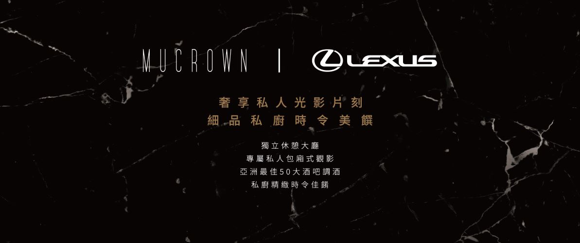 為深耕並拓展Lexus Experience Amazing品味生活的精神,自今年12月起,獨家與奢華的頂級影廳MUCROWN聯名合作,MUCROWN影廳提供獨立且舒適休憩大廳,賓客可自在享用私廚等級的精緻美饌,更以頭等艙包廂式的影廳座位,打造消費者專屬的奢華觀影體驗,創造無與倫比的獨特回憶。