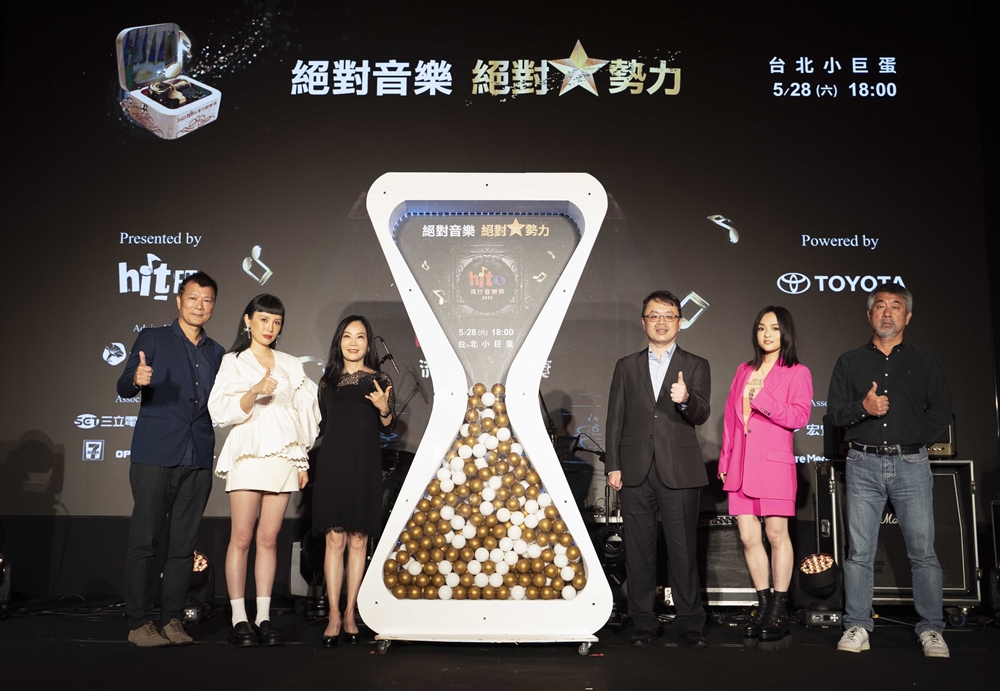 記者會最後由Hit FM聯播網董事長廖婉池、台北之音台長黃暐瀚及Toyota車輛營業本部韓志剛協理與多位嘉賓一起進行啟動儀式,6/3(六)將於台北小巨蛋帶給樂迷聲勢空前的hito流行音樂獎頒獎典禮!