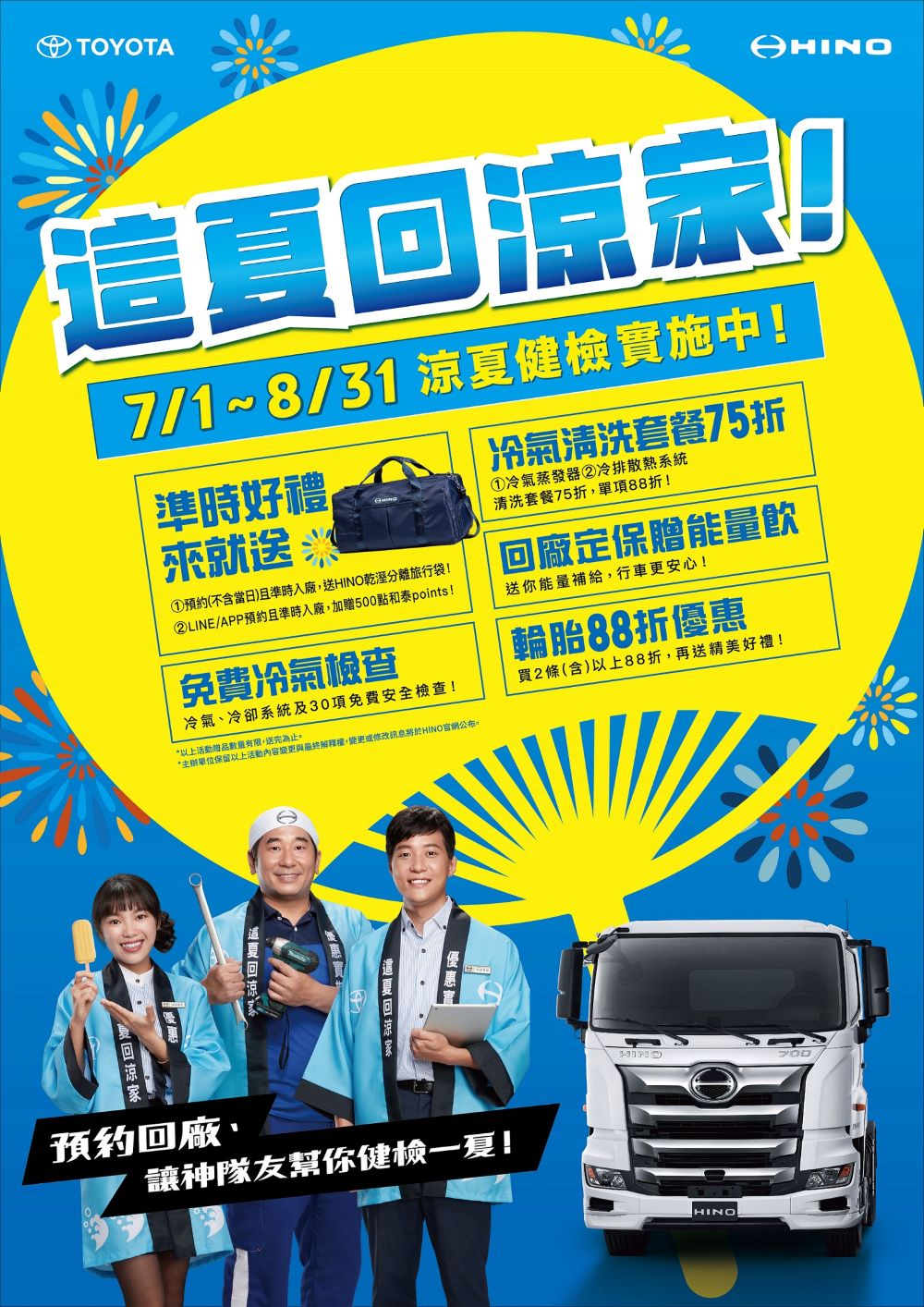 Toyota、HINO商用車台灣總代理和泰汽車自2024年7月1日起至2024年8月31日,舉辦「這夏回涼家!」回廠活動。