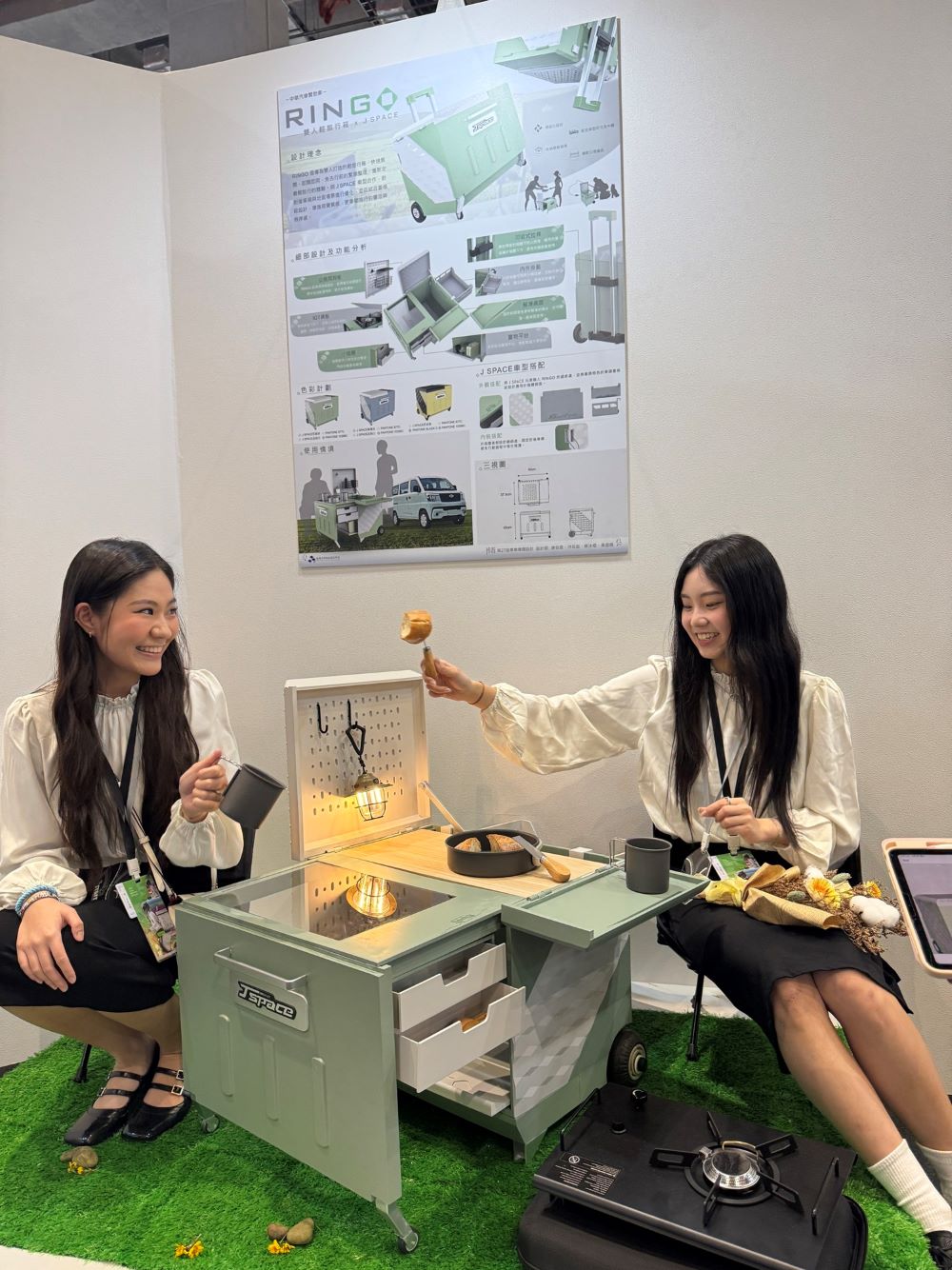 銘傳大學商品設計學系開發「兩件輕露營旅行組」,可完美收納於J SPACE車廂內,滿足雙人旅途中的輕露營與料理需求。