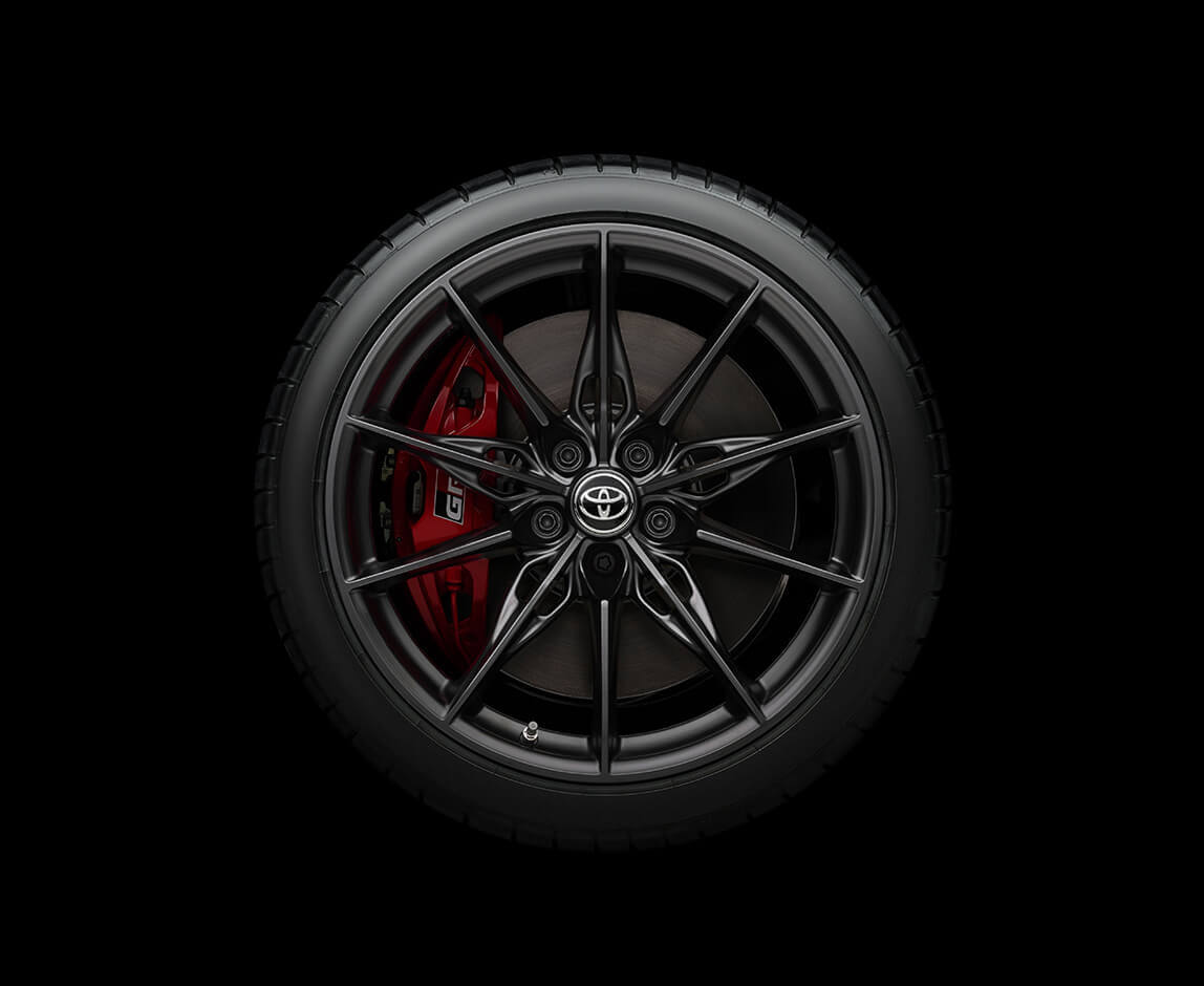 外觀加入碳纖維尾翼與19吋消光黑鍛造鋁圈,動感十足;搭配紅色GR煞車卡鉗及專屬內裝,營造濃厚賽道氛圍。