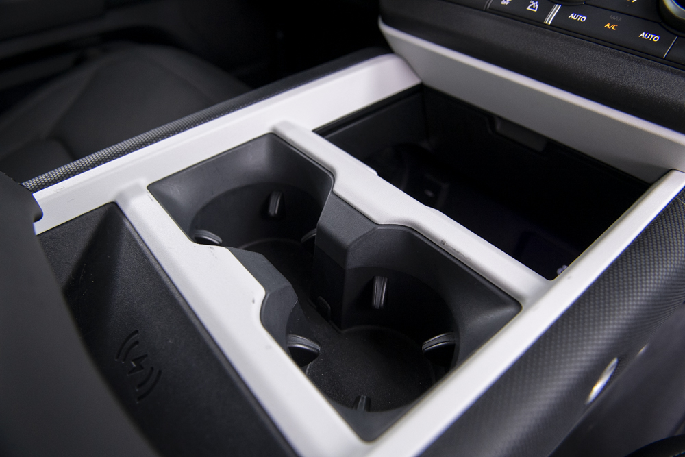 2025.5年式Defender中央控制台重新設計,前座中央扶手前方滑動托盤加入隱藏式置物空間,實用性大增。