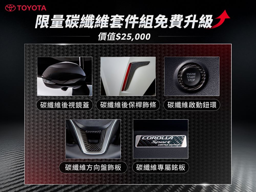 本月入主Corolla Spprt限時免費升級跑格碳纖維套件組1