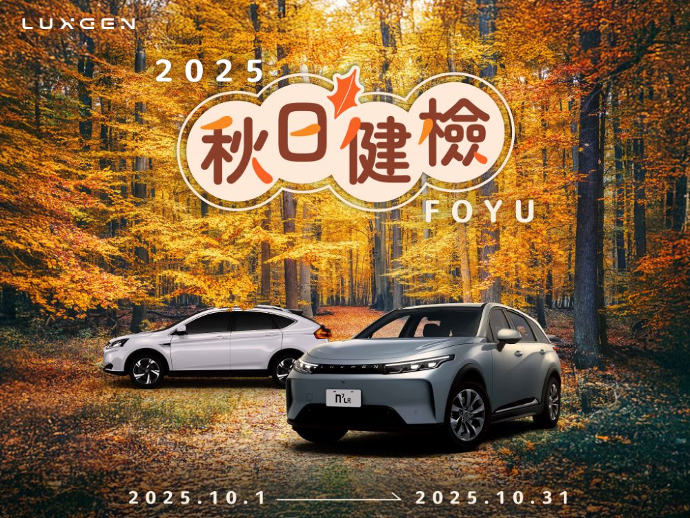 Luxgen為讓國人提早安排10月連假出遊計劃,同時滿足所有車主行車安全的需求,自10/1(三)至10/31(五)止全面展開「2025 LUXGEN FOYU秋日健檢」活動(1),貼心提供車主「全車安全健檢」、「專屬優惠套餐」、「指定零件折扣」,消費滿額再享「亮點回饋」,活動期間同步再推出n7專屬原廠配件超值優惠,Luxgen誠摯邀請車主及早預約回廠進行愛車健檢,給予所有乘員們安心無虞、自在享樂的美好時光!
