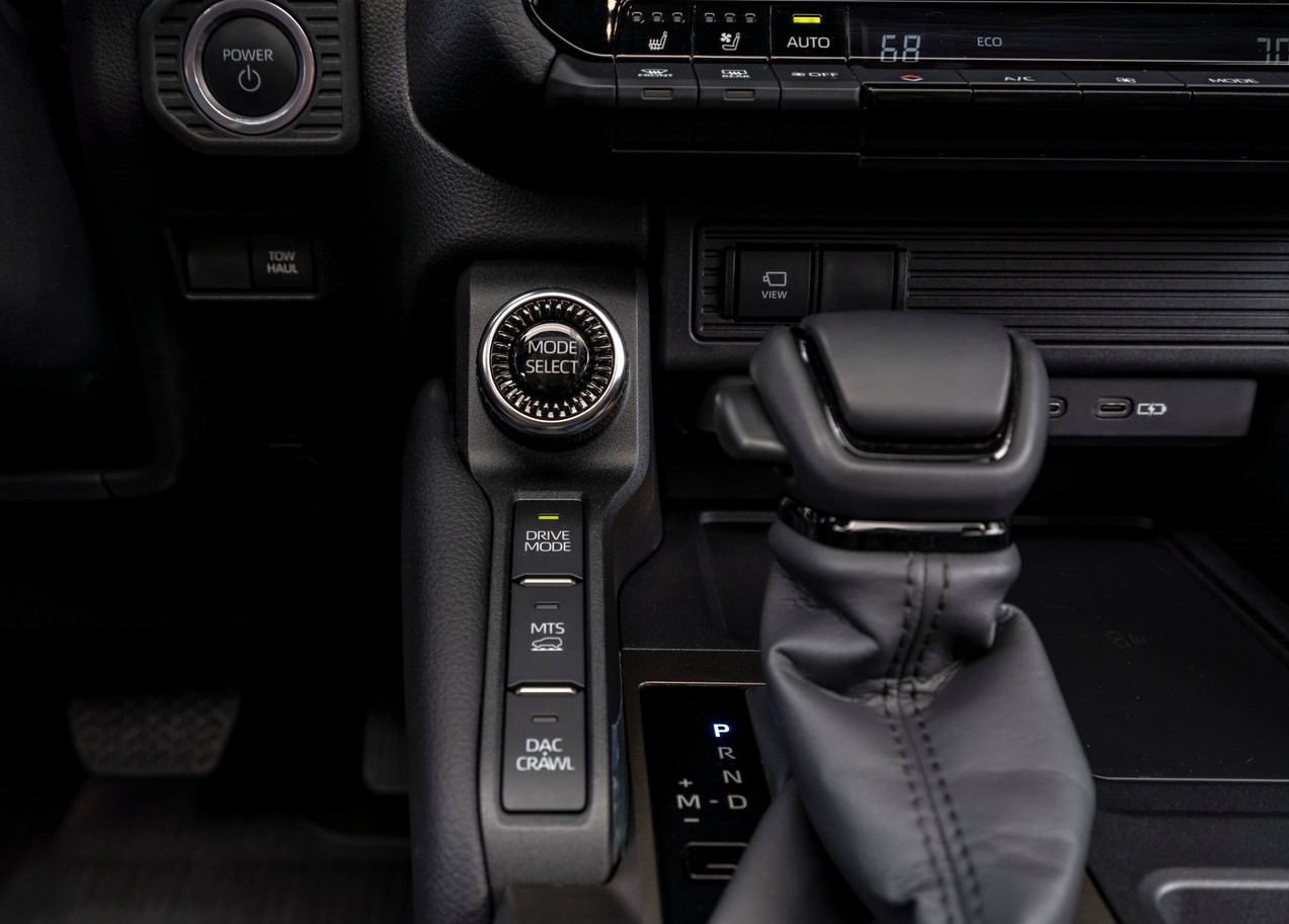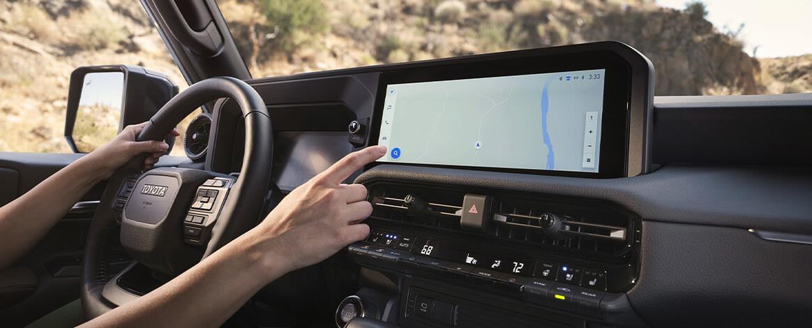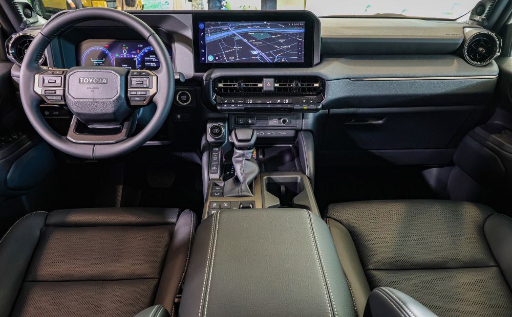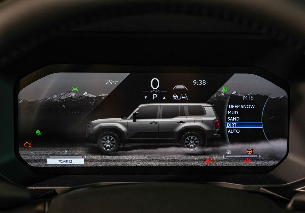 在座艙設計上,Land Cruiser採水平設計語彙,提供開闊駕駛視野,並依實際操作情境配置大量實體按鍵,兼顧便利與直覺操作性。配備12.3吋數位儀表、中控螢幕與抬頭顯示器,支援無線Apple CarPlay與Android Auto,越野操作更輕鬆就手。