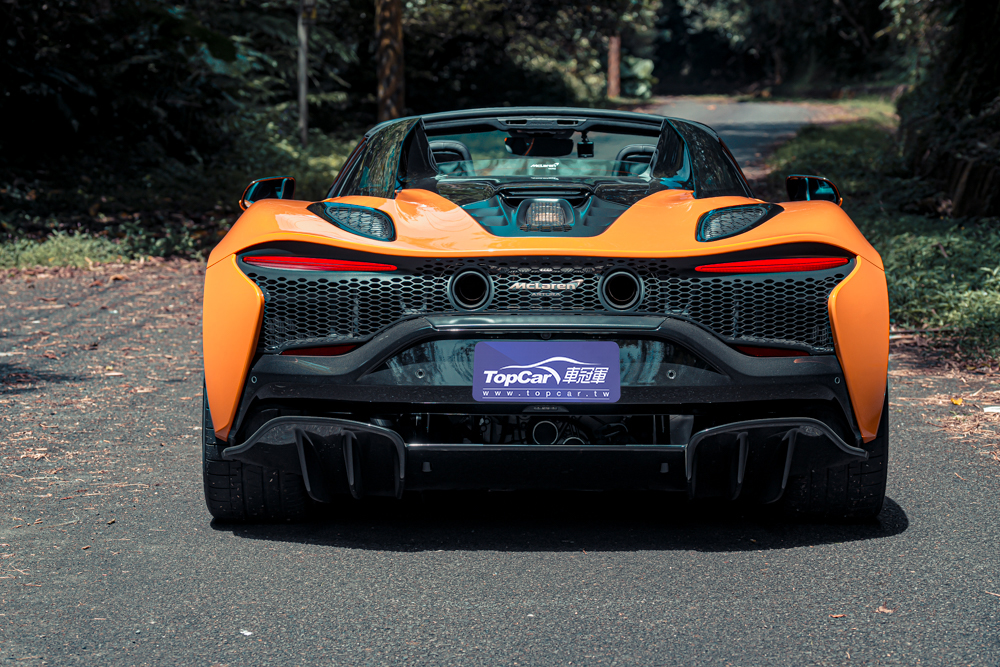 讓人回味的是聲浪, McLaren針對開篷狀態下重新調校排氣系統,聲浪更厚實、更有層次,你會覺得這部V6油電跑車甚至比V8超跑更帶勁。