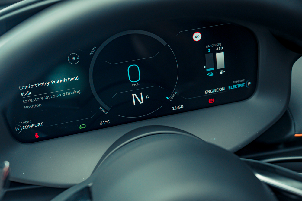 至於純電模式,Artura Spider續航提升至33km。車底中央配置7.4kWh鋰電池,AC慢充約2.5小時即可充至80%,適合近距離、市區行駛。實際駕駛,安靜無聲的起步讓人驚奇,進出停車場、市區行駛不驚動旁人。但是逮到機會、重踩油門,這具油電引擎湧現的爆發力又快又狠,推力既線性又飽滿,換檔銜接極為迅捷,真是過癮!