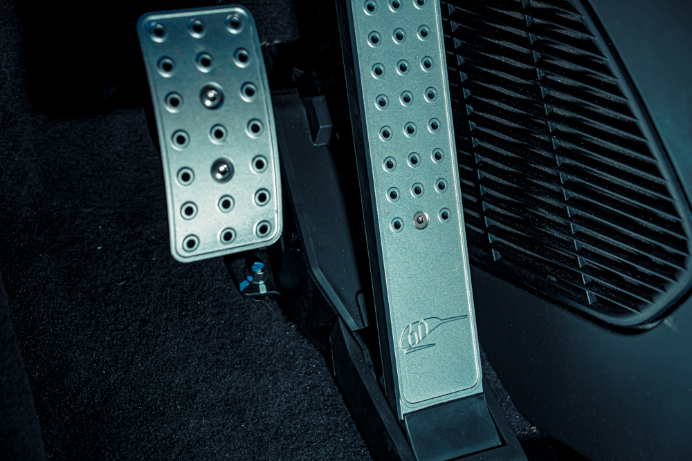 椅背固定座椅為輕量化設計。金屬腳踏板藏有60週年驚奇彩蛋。