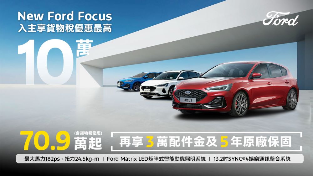 入主Ford指定車款享貨物稅減徵最高10萬元