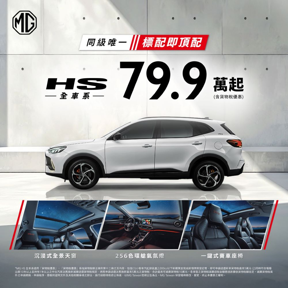 迎接年末購車旺季,MG Taiwan宣布11月購車優惠正式開跑,全車系皆符合新購小客車貨物稅減徵資格。