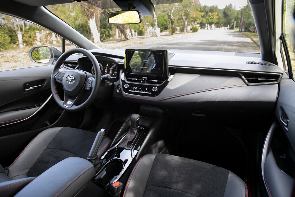 延續Altis 2.0汽油GR Sport基底,加上12.3吋全數位儀表,座艙飾條換為槍灰色,車室空間感覺為沉穩。