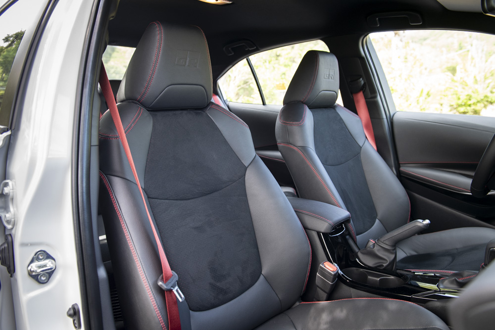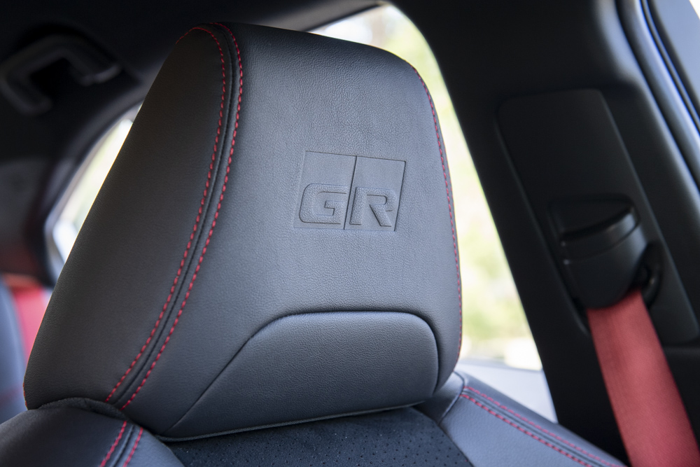 透過紅色縫線、類麂皮/皮質座椅、頭枕GR字樣、紅色安全帶…營造出運動氣息。