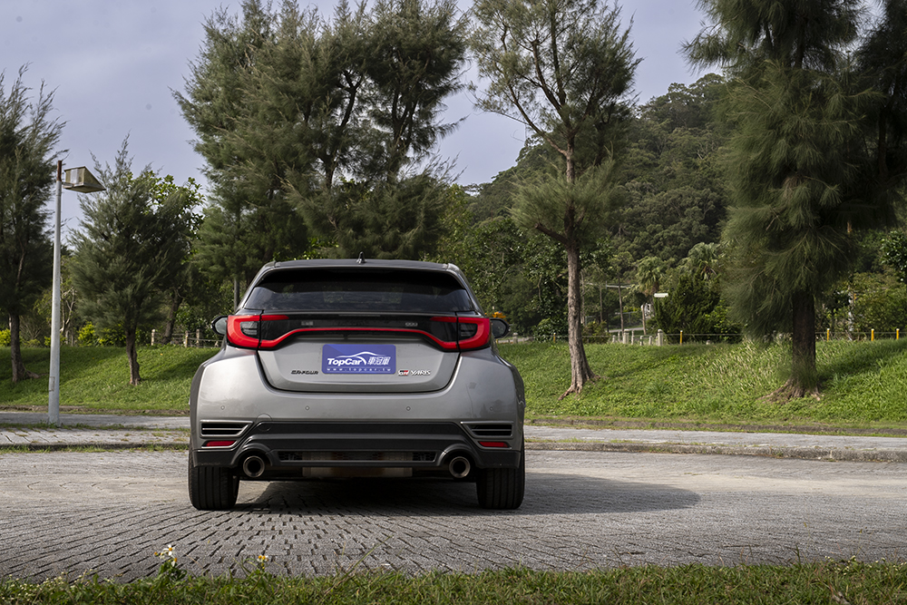 車尾部分,後尾翼第三煞車燈與保桿底部倒車燈,兩者整合至尾門中央飾板。當改裝尾翼或更換保桿,不必煩惱燈具牽線問題。再來是空力細節,GR Yaris自排後保險桿左右下緣增加空力孔洞,底盤下方後端追加護板,進一步優化氣流。