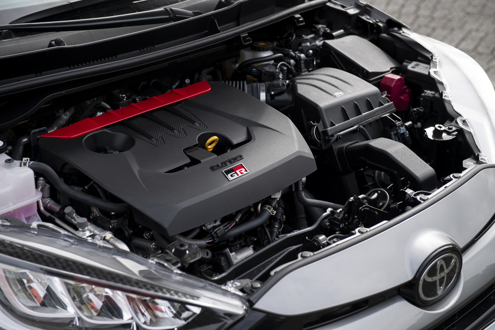 經過小改款,這具G16E-GTS 1.6 升三缸渦輪引擎再獲強化,最大馬力從 261ps 提升至 280ps,最大扭力來到 39.8kgm。GR-FOUR四驅切換也經過調校,前後扭力配比調整為Normal (60%:40%)、Gravel (53%:47%)還有適用於賽道的Track模式。其中,Track模式能在60%:40%與30%:70%間自動變換。
