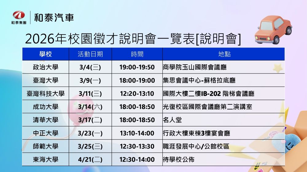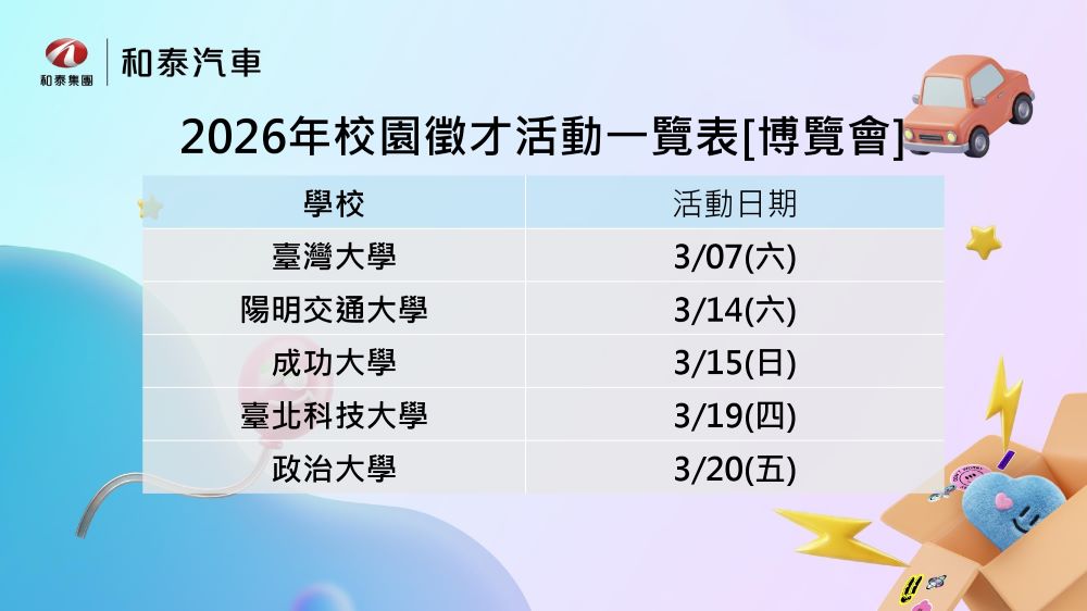 和泰汽車校園徵才說明會,活動一覽表