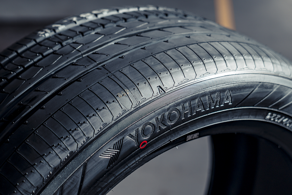 見到YOKOHAMA Advan dB 555胎肩,上面印有「E+」標誌認證,這是低滾動阻力與高節能表現,生產製程採用100%再生能源電力,十分符合永續環保趨勢。