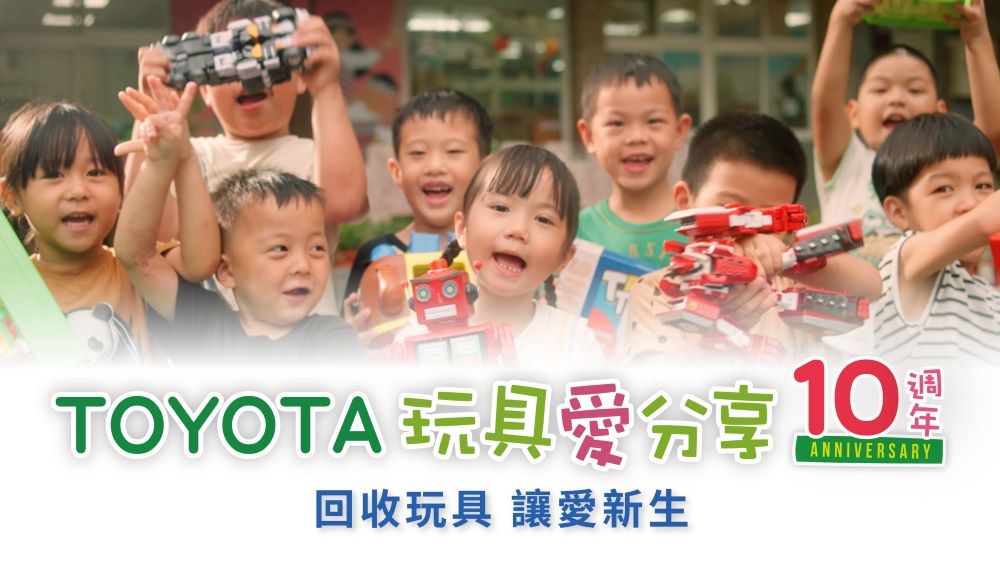 「TOYOTA玩具愛分享」活動自2016年推動至今,已成功幫助超過540噸玩具(約當於13萬棵樹年減碳量)踏上新生旅程。除了「TOYOTA玩具復活節」外,深受歡迎的「TOYOTA小小技師體驗」、「傳愛背包」,以及創新活動「玩具再生體驗營」等*1也將陸續舉辦,歡迎您一起加入我們,讓愛新生。